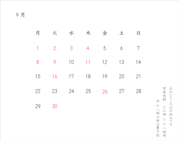 9月営業日